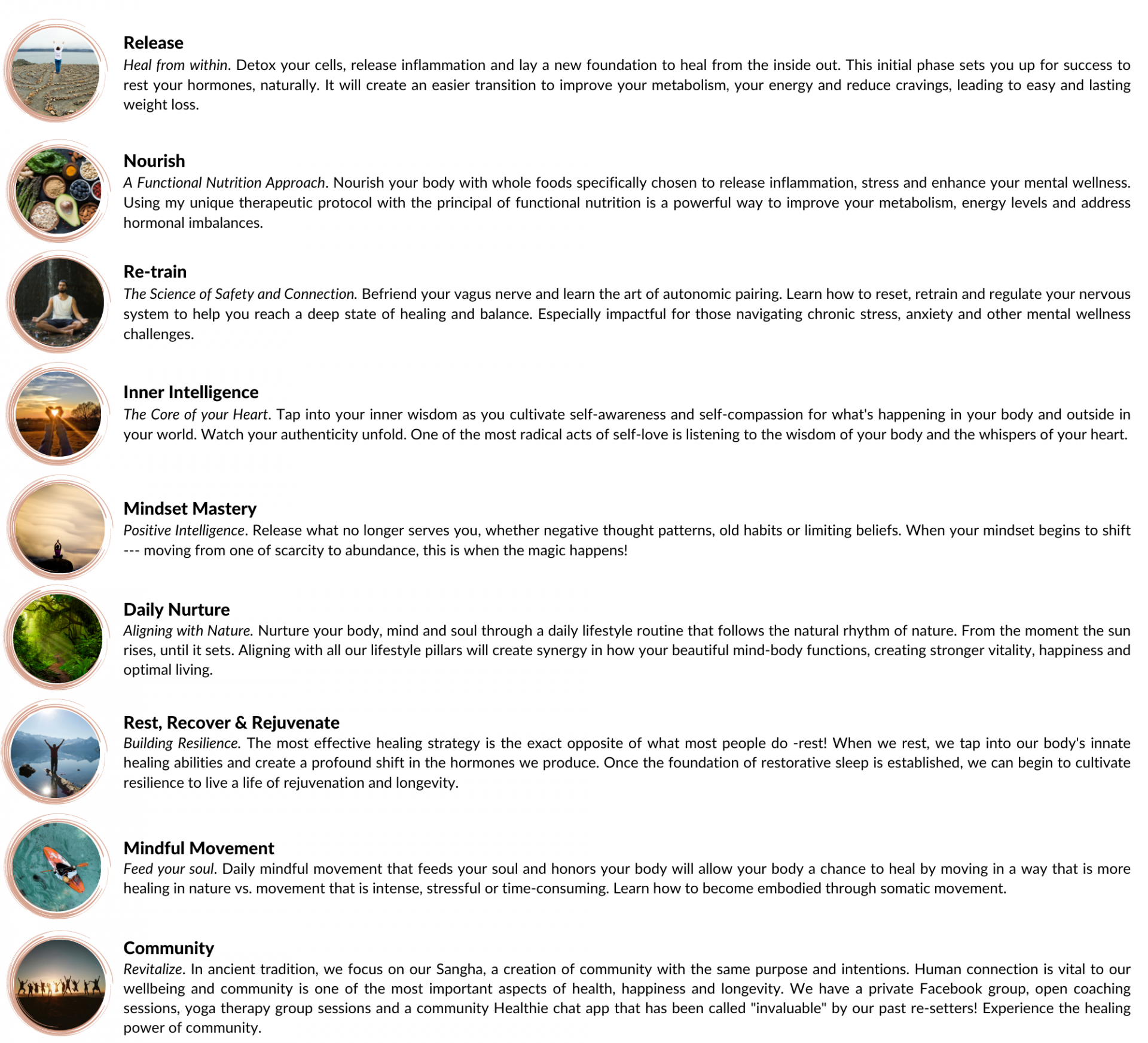 You will have access to some of the highest sought out teachers in functional nutrition, mindset, energetics and wellness from the US, Canada and England. Live and growing Library.